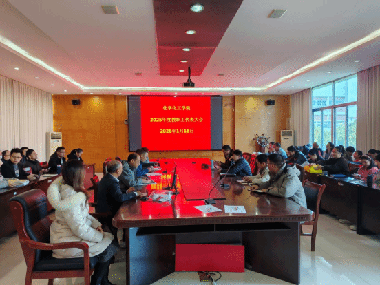 为深入贯彻党的二十大和二十届历次全会精神,进一步发挥教职工代表大会在学院治理中的重要作用,持续推动学院各项事业高质量发展,化学化工学院于2026年1月18日下午在枫林校区行政楼501会议室召开2025年度教职工代表大会。本次大会应到代表65人,实到57人,8人因事请假。