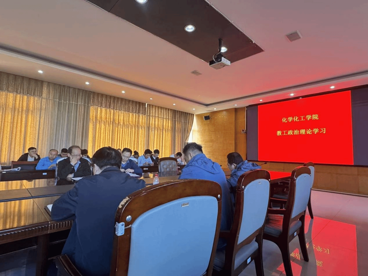 10月28日下午,化学化工学院在行政楼501会议室召开教职工政治理论学习会,专题动员部署学习宣传贯彻党的二十届四中全会精神,学院领导班子和全体教职工参加,会议由学院党委书记申亮主持。