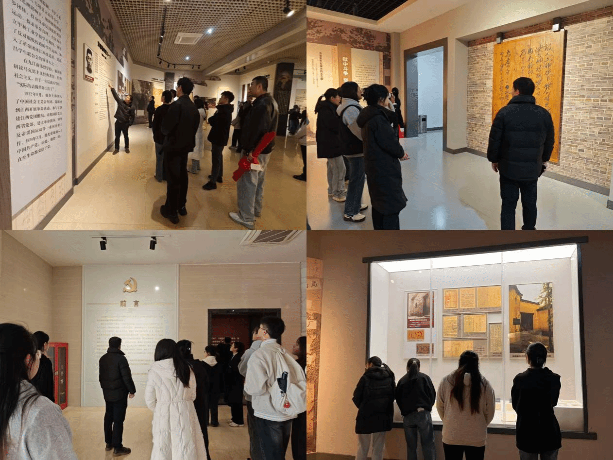 随后,大家步入方志敏烈士事迹陈列室,一幅幅珍贵的历史图片、一件件厚重的革命文物,系统展现了方志敏烈士为民族解放和革命理想不懈奋斗的峥嵘岁月。师生们驻足凝视,认真聆听讲解,深刻感悟以“爱国、创造、清贫、奉献”为核心的方志敏精神。现场交流环节,党员们结合所见所感,分享对烈士事迹的触动与思考。教师党员代表阐述了方志敏烈士的“清贫”品格,勉励新时代青年党员以先烈为镜,坚守初心、勇担使命,将精神力量转化为求学奋进的实际行动。