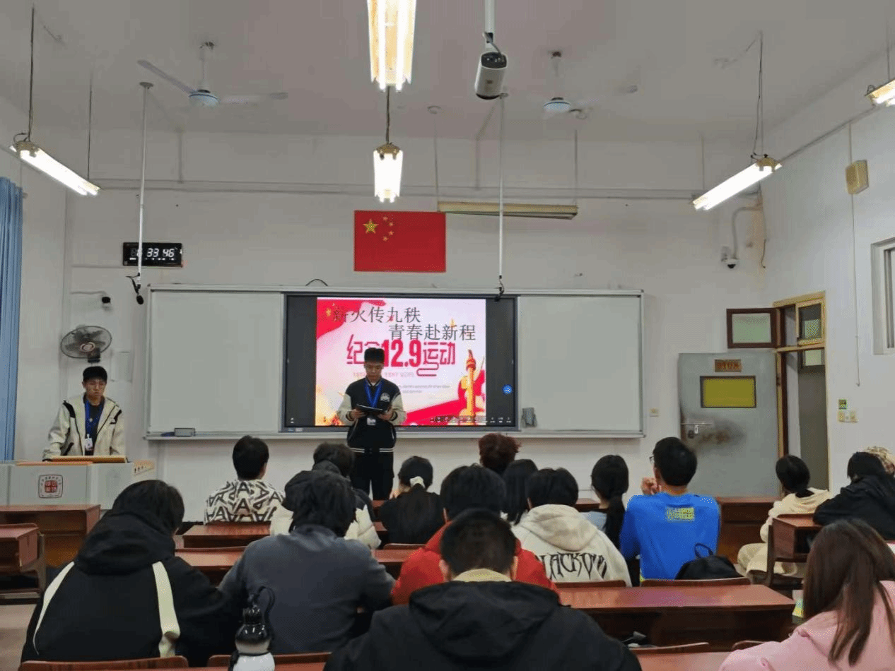 为引导青年学生重温“一二·九”运动光辉历史,感悟爱国精神的时代内涵,12月7日晚,化学化工学院“红五星”宣讲团走进25应用化学(职师)1班,在9108教室开展“薪火传九秩,青春赴新程”主题宣讲活动。