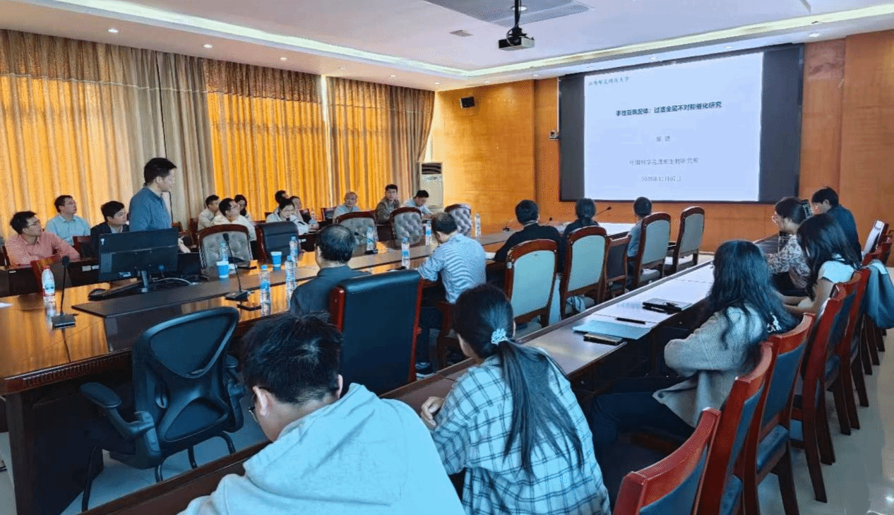 11月7日,中科院成都生物所廖建研究员应邀来校作题为“手性亚砜配体:过渡金属不对称催化研究”的学术报告。报告由化学化工学院副院长范丛斌教授主持。