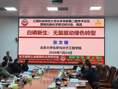 1月24 日,北京大学化学与分子工程学院张文雄教授莅临我校红角洲校区图书馆949会议室,作题为 “白磷新生:无氯驱动绿色转型” 的学术报告。讲座由副校长刘刚教授主持。
