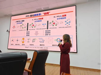王天利教授系统介绍了其团队在构建新型仿生手性肽季鏻盐(PPSs)催化体系解决弱键催化活性及选择性调控方面的研究工作。通过“动态空腔诱导-契合”与“弱键协同”的创新催化协同机制,实现了复杂手性分子的精准合成。该类新型仿生PPS催化剂的创制为结构多样的复杂手性分子的精准合成奠定了基础,为不对称合成化学领域提供了新的思路。本次学术报告盛会,有效激发了我校师生的科研热情与创新意识,对营造浓厚学术氛围、助推化学等学科建设向纵深发展具有重要意义。